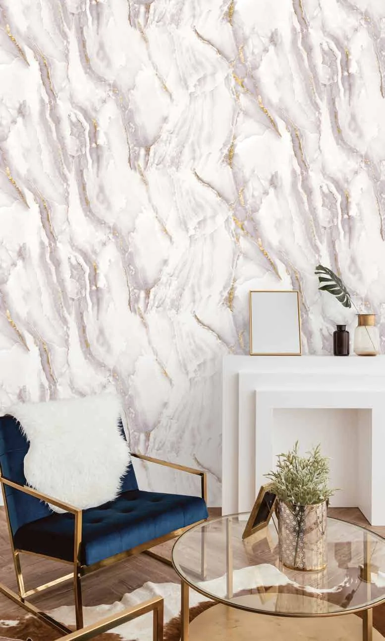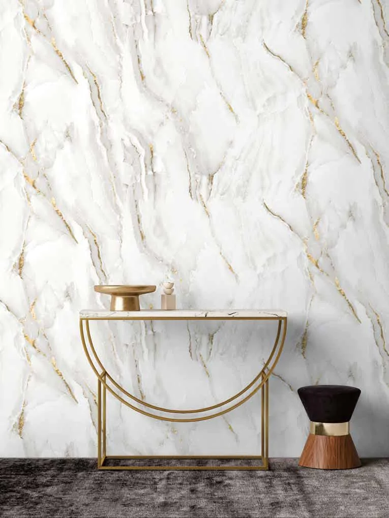 ورق جدران رخامي كوري أبيض بعروق رمادية