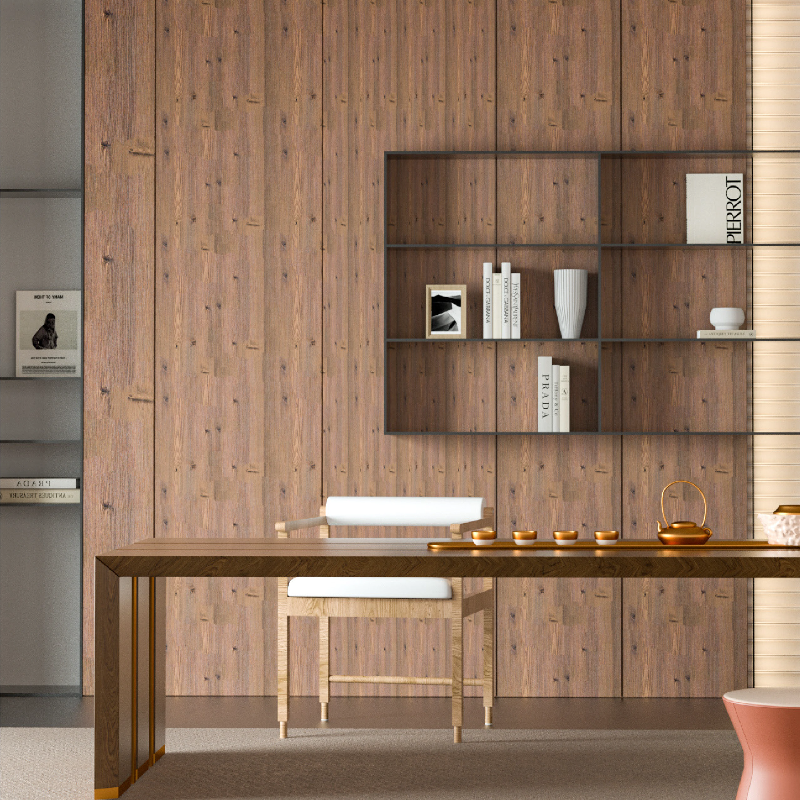 بديل الخشب الشيبورد بلون بني غامق يجسد الدفء، ويعكس هالةً من الرُقي والعمق للمساحات التي يُضاف عليها، بملمسِه المصقول والناعم ينازع هذا المنتج ألواح الشيبورد الحقيقية، يمكن اختياره لتحويل منزلك لمشهدٍ فني متكامل يعبق بالأصالة.