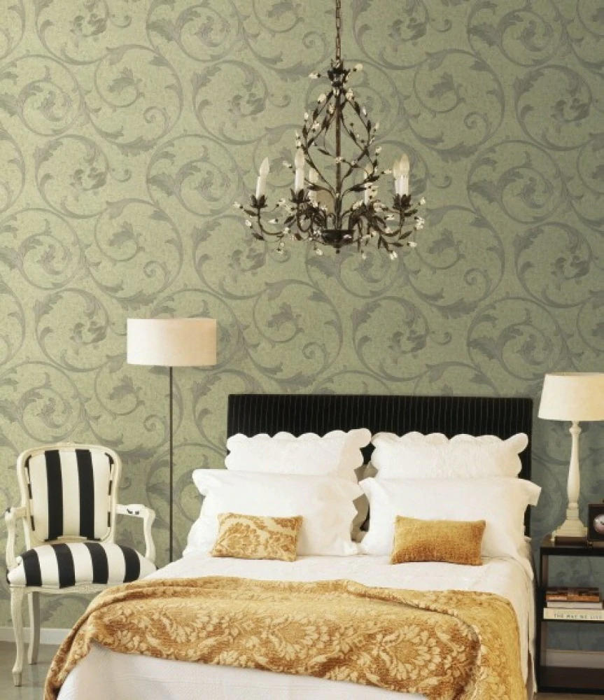 استخدامات ورق جدران منقوش اخضر مع رمادي